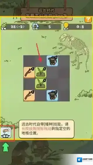 5、在远古时代,玩家自带播种技能。长按技能图标并拖动到空地格即可使用该技能。