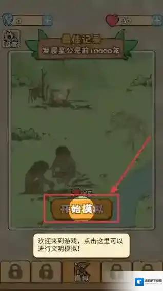 1、点击开始模拟按钮即可进入游戏,时间设定在公元前一万年,文明的起点从远古时代开始。