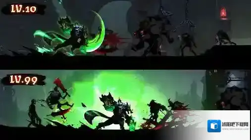 1、不断的升级你的角色,增强攻击力、防御、血量、攻速等众多属性,帮助你去战胜更多强大的暗影敌人。